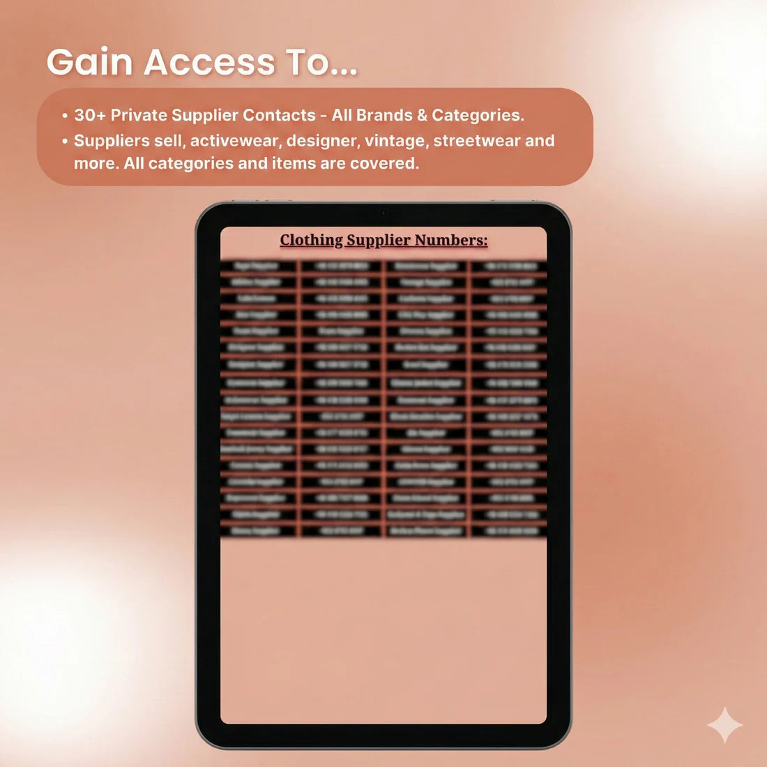 The Complete Resell Bundle gives you access to both The Reselling Playbook and the All Supplier List, packed with 50+ verified contacts across multiple categories.
